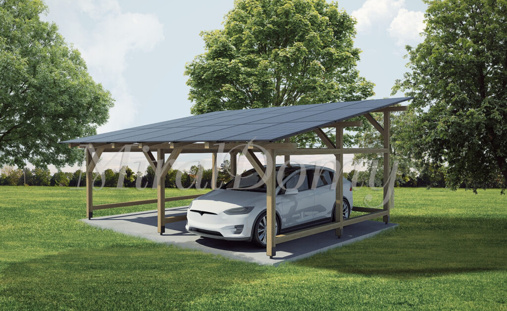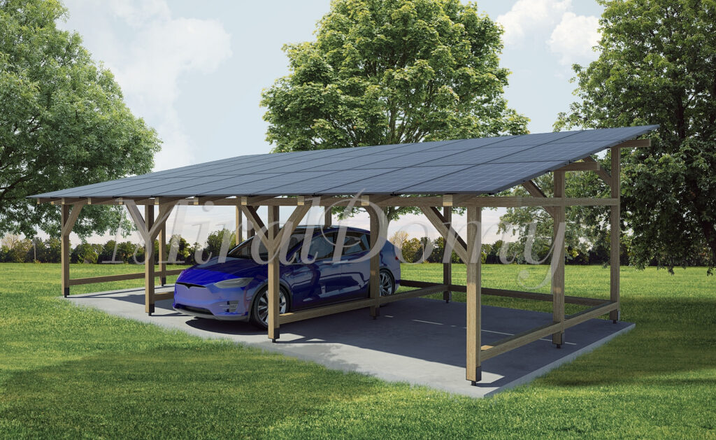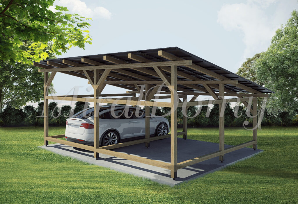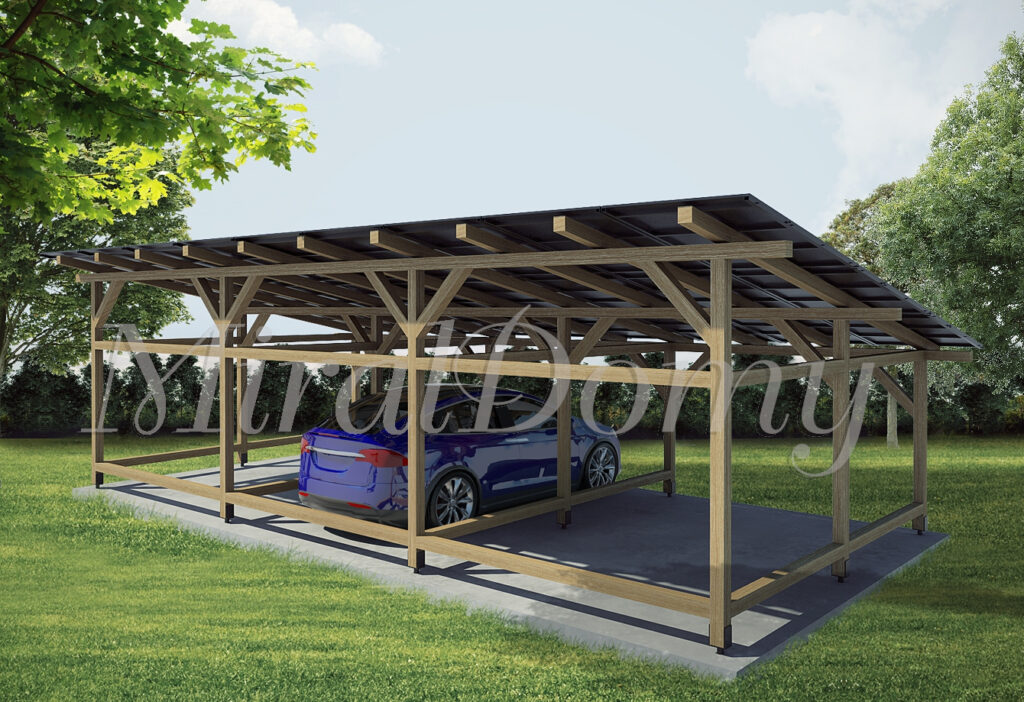 Drewniana konstrukcja pozwala na szerokie spektrum zastosowań. Możesz stworzyć w niej przestrzeń do przechowywania, zadaszyć samochód, urządzić przytulną wiatę ogrodową, a wszystko to przy wykorzystaniu dachu do montażu paneli fotowoltaicznych.